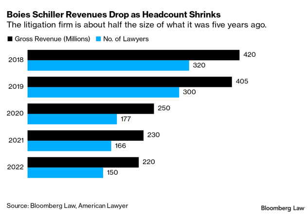 Boies Schiller has lost more than half of its lawyers over the past five years and saw its gross revenue plummet. But the firm has said it’s emerged in a healthy position, with profits that grew by 13% last year and a slate of high-profile cases it has a role in.